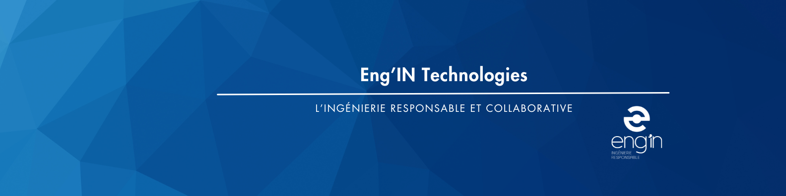 Cette bannière reflète l’identité d’Eng’IN Technologies auprès de ses partenaires et clients. Elle met en avant la charte graphique, son expertise, son positionnement responsable et son engagement dans des projets innovants et durables.